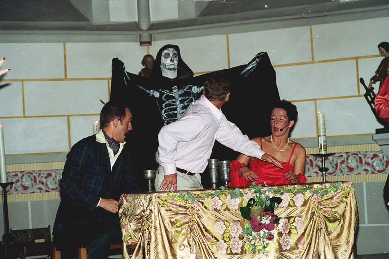 Jedermann, ein reicher, hartherziger, unchristlicher Zeitgenosse wird vom zürnenden Gott frühzeitig aus seinem Erdenleben abberufen. Mitten im sinnenfrohen Tun, im besten Mannesalter fordert der Tod ihn auf, vor Gottes Richterstuhl zu erscheinen. Jedermann, der sich bitter beklagt über sein unverhofftes Ableben, ringt dem Tod eine Frist ab, in der er sich um Begleiter für den letzten Weg bemühen will. In der Stunde seines Todes aber fallen die Masken seiner irdischen „Freunde“ und sie zeigen Jedermann in ihrer Weigerung, mit ihm zu gehen, ihre wahren Gesichter. Als auch sein Geld –der Mammon– ihm klar macht, wer wen besessen hat, findet sich Jedermann „mutterkindallein“, wären da nicht doch ein paar gute Werke, Glaube, Einsicht, Reue und Buße. Somit gelingt es dem Teufel nicht, Jedermann zu sich zu holen und der Tod ermöglicht es, dass Jedermanns Seele ins himmlische Reich eingelassen wird.